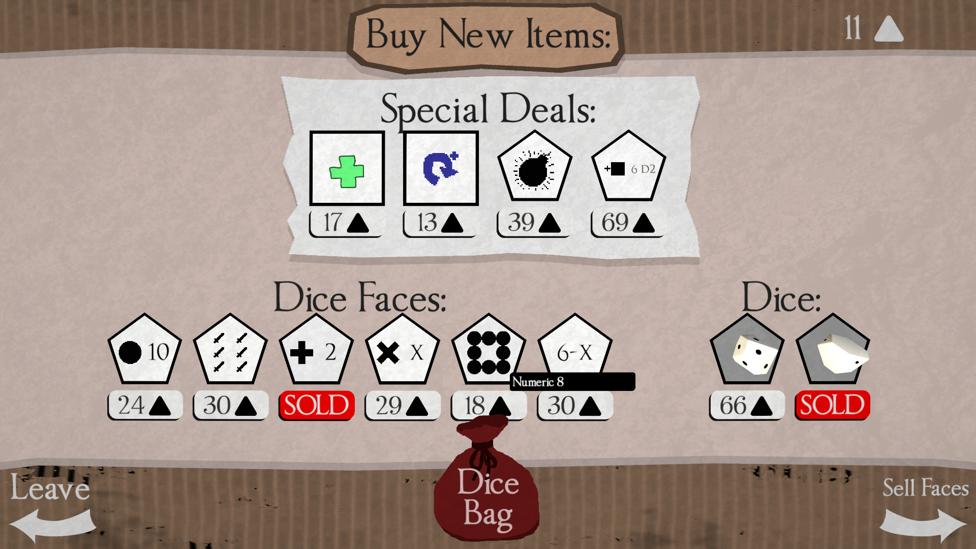- Unlock new dice skins by beating runs to customize the look of your set.